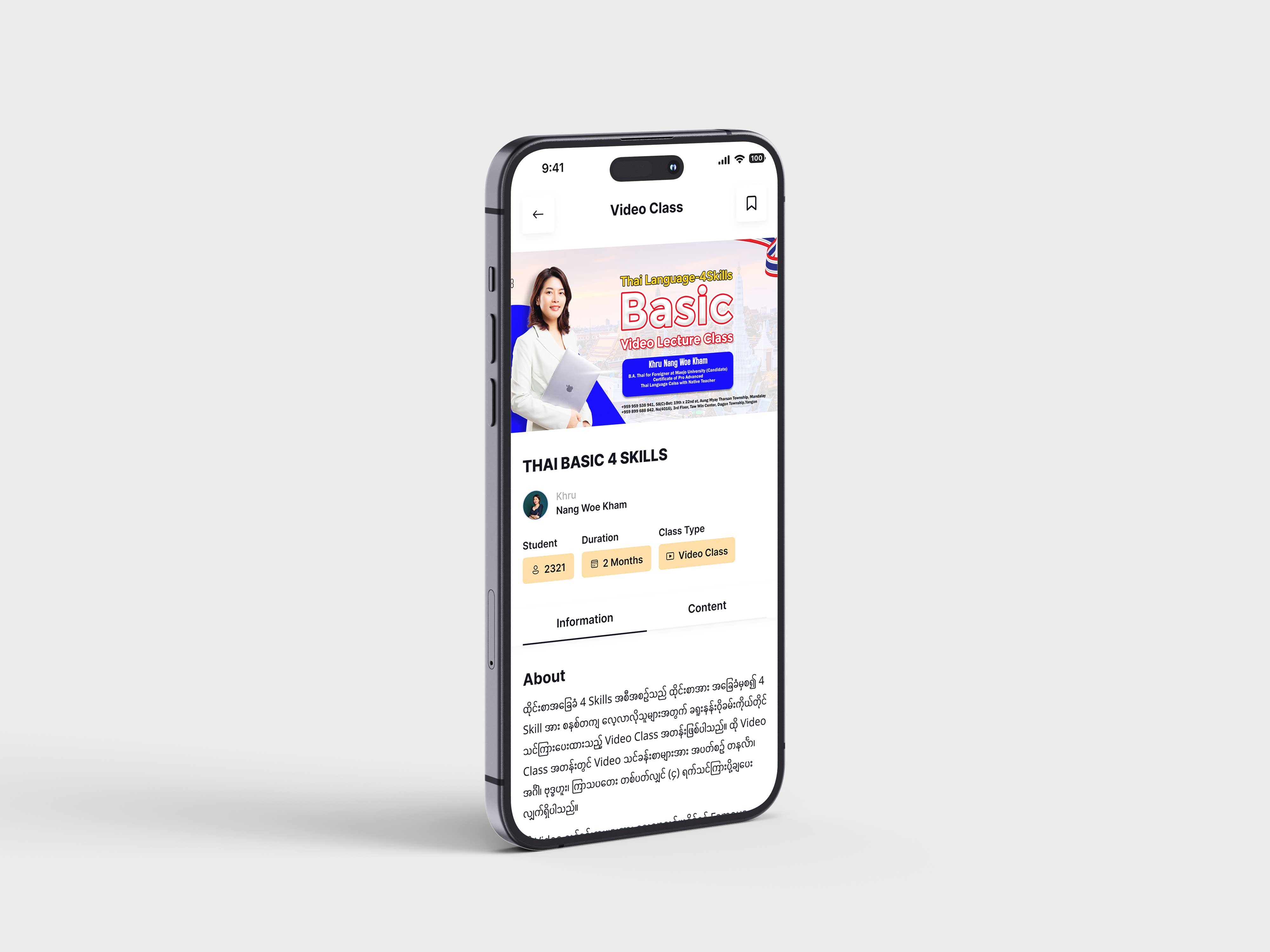 This is a learning application I designed and developed for a Thai language training school. The app allows students to easily access and learn from video classes online.